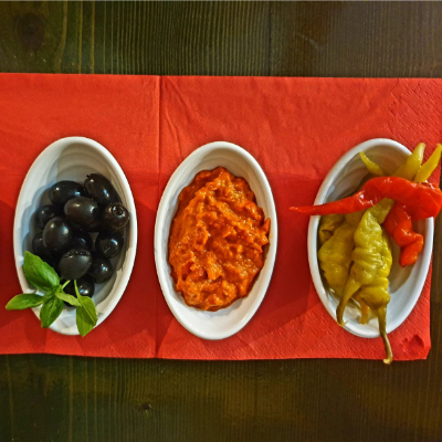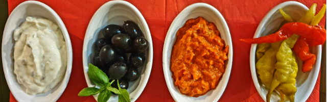 pomidor, sir, plodovi mora, slana riba, kapari, češnjak