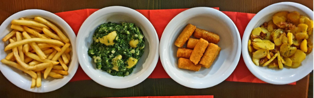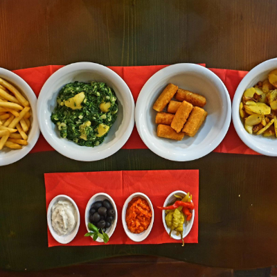različite vrste mesa sa povrćem u pikantnom umaku s kroketima